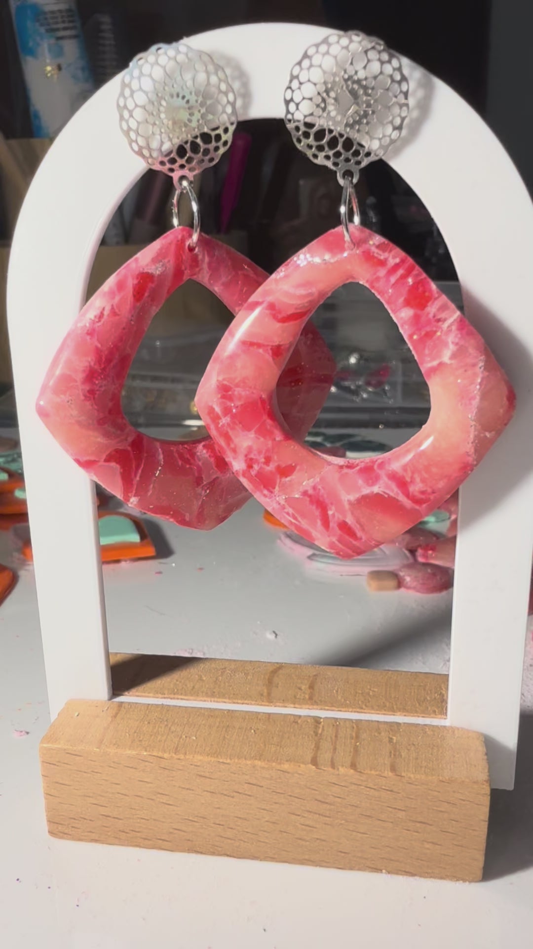 Indulge in luxury with our Rosé, featuring marbled pink, white, and silver tones expertly resined with silver embellishments. Adorn yourself with this elegant piece, as if it were a work of art. Experience the exclusive sophistication of this truly unique accessory.
